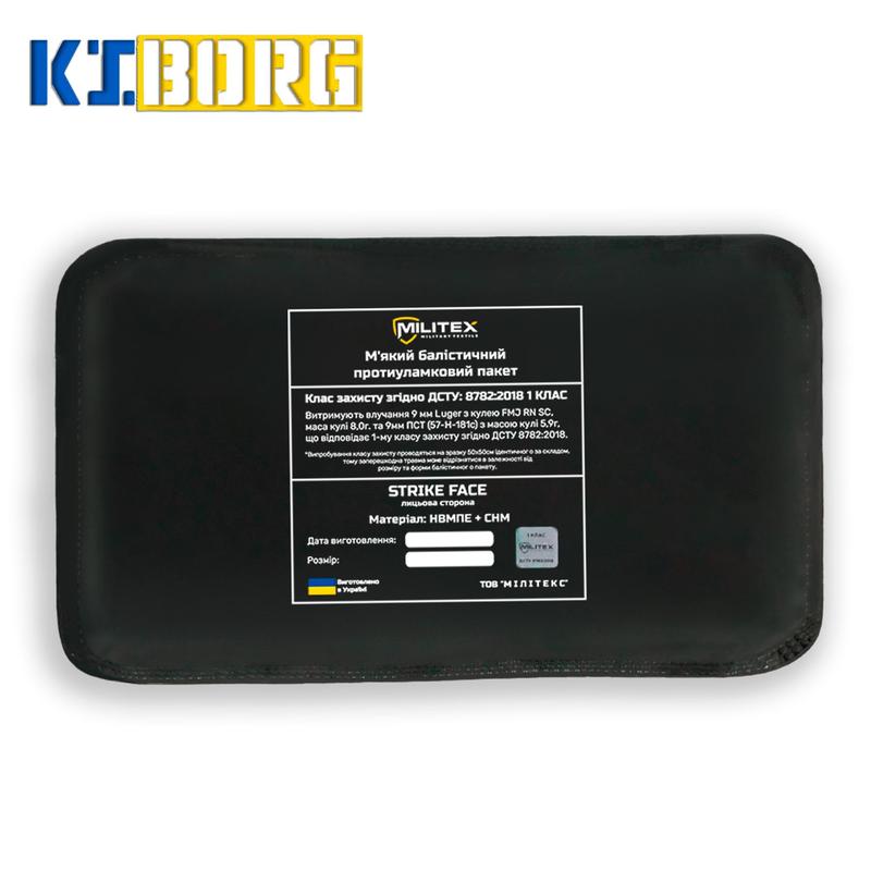 *Під 1 класом розуміється еквівалент за складом, який випробовується на стандартних лабораторних зразках 500х500мм, тому позаперешкодна травма може відрізнятися взалежності від розміру та форми балістичного пакету.