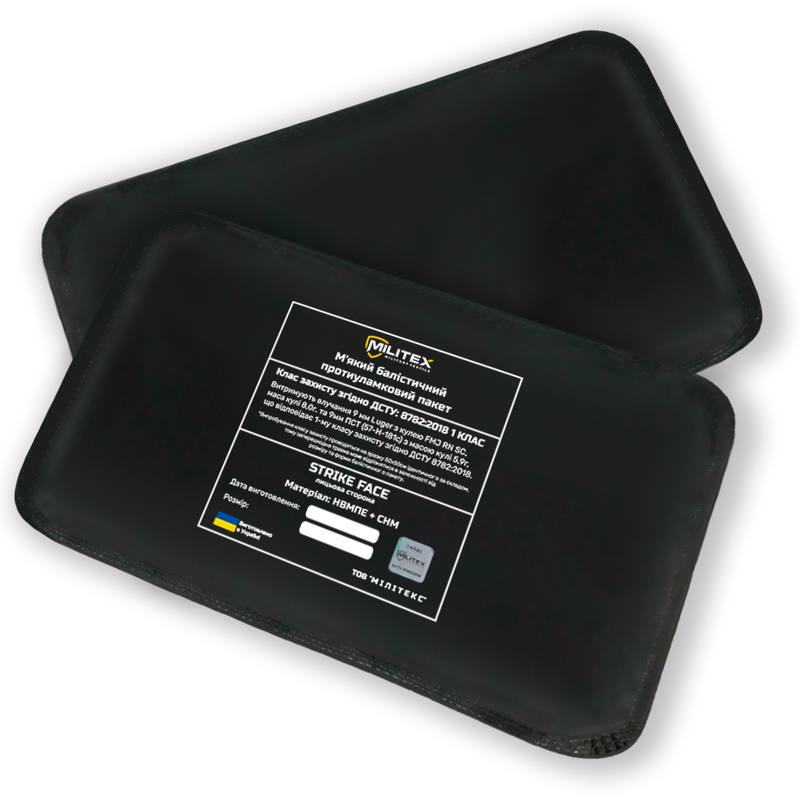 Балістичні пакети – це м’які, гнучкі та легкі панелі різної форми, які надійно захищають від пістолетних куль, дрібних уламків та вторинних вражаючих елементів (уламки бетону, скла та ін.).