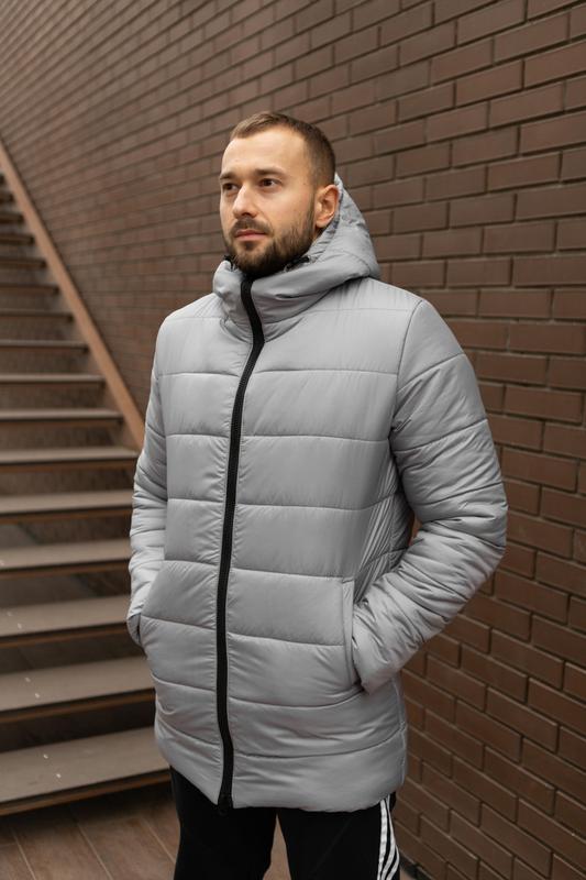 Куртка чоловіча зимова тепла курточка з капюшоном сірого кольору