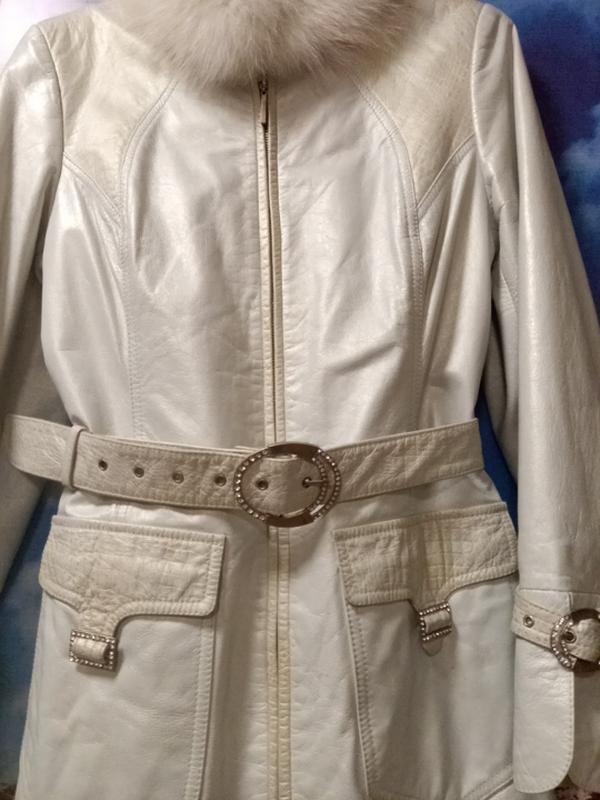 шкіряне пальто на кролячого хутра, з відстібається підкладкою з повністю по всій підкладі хутром, можна носити восени шкіряний плащ, взимку як пальто на хутрі, вад ,дірок немає. дуже класно виглядає .