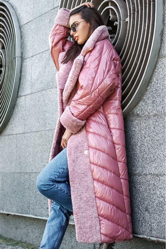 Зимнее женское пальто. Материал: плащевка-лакэ + иск мех . Цвет розовый.Размеры: XL / 56