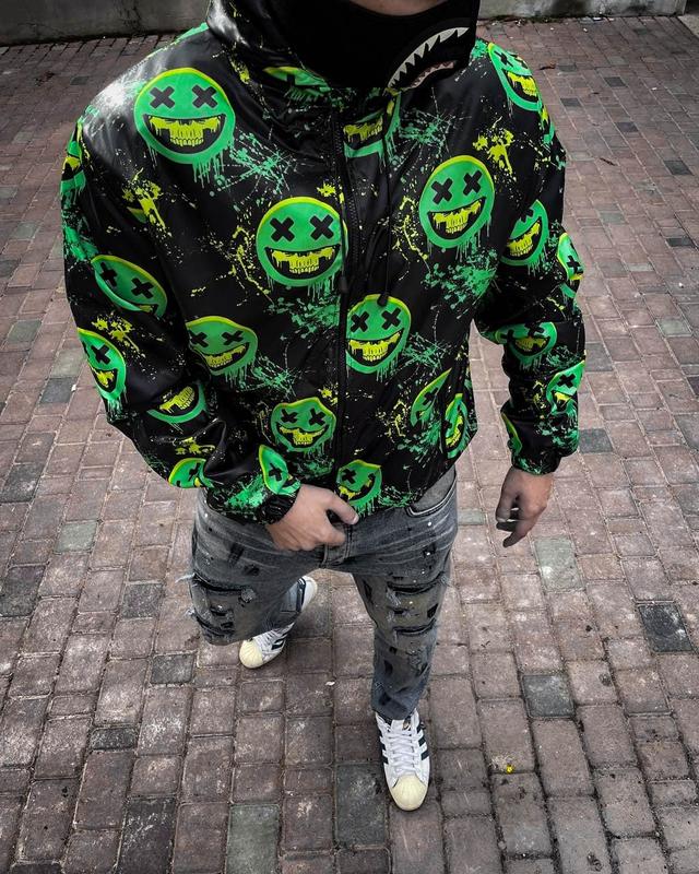 Зелена чоловіча вітрівка з принтами