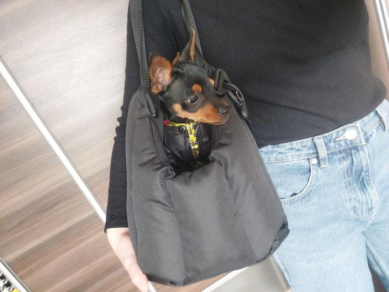 Внутри сумки переноски вшит ремешок с карабином и регулятором длины для дополнительной фиксации Вашего питомца