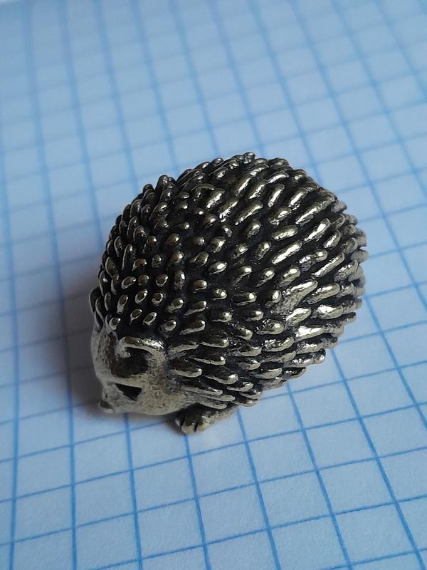 Їжак— невеликий художній виріб, який вражає своєю ніжністю та уважністю до деталей. Вага становить 48.2 грама,довжина 2.8 см а висота 1.6см . Цей шедевр стане чудовим подарунком для колекціонерів та любителів мініатюри, переносячи вас до чарівного світу та естетики мистецтва.Матеріал-Бронза