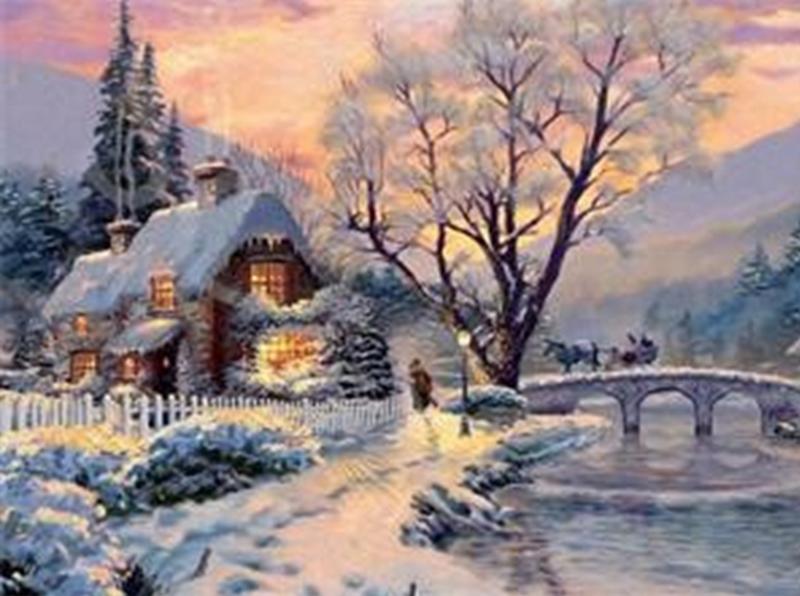 Набір алмазна мозаїка вишивка снігова зима сніговий краєвид на підрамнику повна 5d 40х50 с...