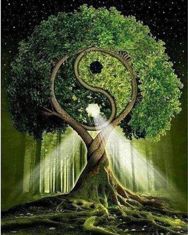 Алмазна мозаїка на підрамнику дерево інь-янь 40х50 tn1028