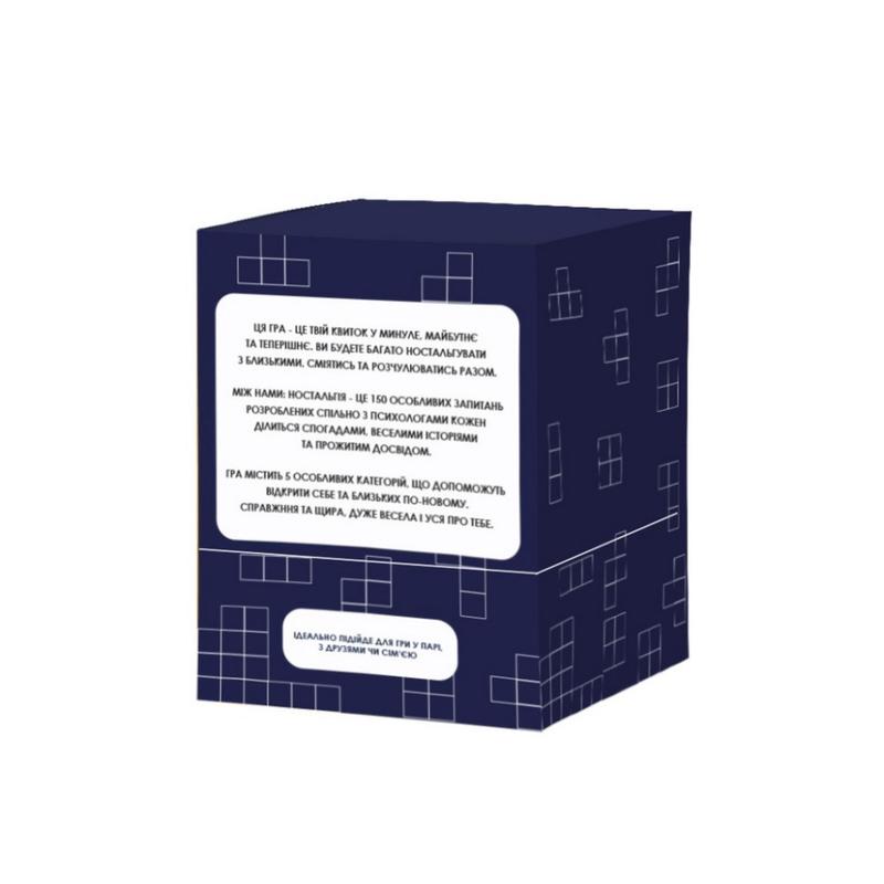 01. Гра розроблена спільно з психологом і забезпечить Вам теплі розмови Пориньте у вир спогадів і приємної ностальгії разом! Час згадати шкільні роки, університетські вечірки, старі добрі реклами, речі, які вже давно вийшли з тренду та багато іншого. 02. Ви будете багато ностальгувати, сміятися та розчулюватися разом 150 особливих питань розроблених спільно з психологами. Ви будете ділитися спогадами, веселими історіями і прожитим досвідом. 03. чудова ідея для затишного вечора Гра містить 5 категорій, які гарантують не тільки веселий вечір, а й важливі інсайти про себе. Ідеально підійде для затишних вечорів під улюблені старі треки.