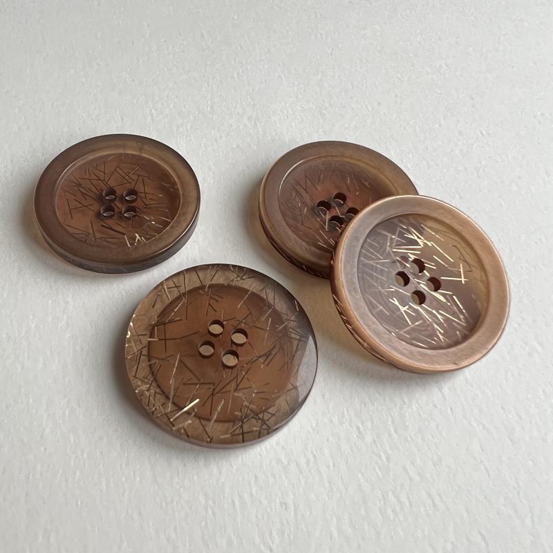 Ґудзик костюмний з блискітками прозорий 4отв коричневий 17мм пластик