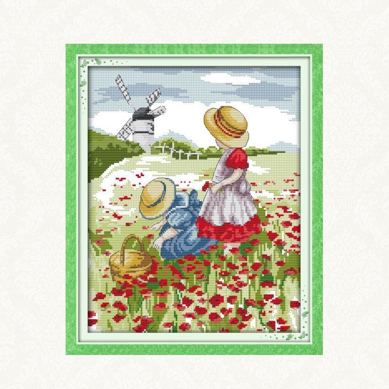 Набір для вишивки хрестом макове поле 24*30 см часткове заповнення
