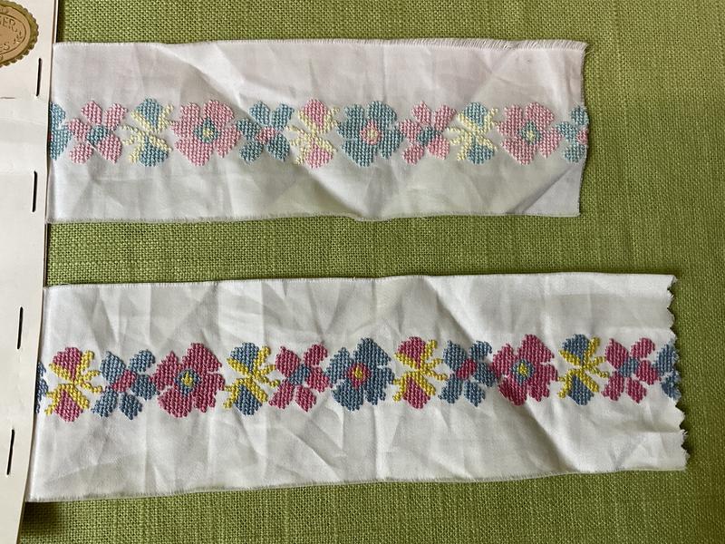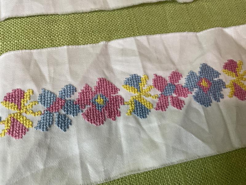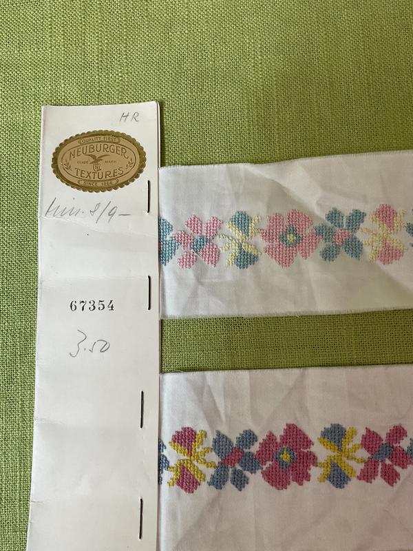 Якість перш за все, торгова марка Текстури Neubürger з 1866 року.Зразок вінтажної швейцарської вишивки. Розмір відрізка 24 і 21см. Ширина 6см, ширина вишивки 2см,