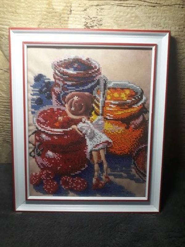картина, вишита бісером "Фея джему" часткова зашивання, розмір з рамкою 24х29,5 см картина в рамі з матовим склом вишитий з любов'ю і в гарному настрої)