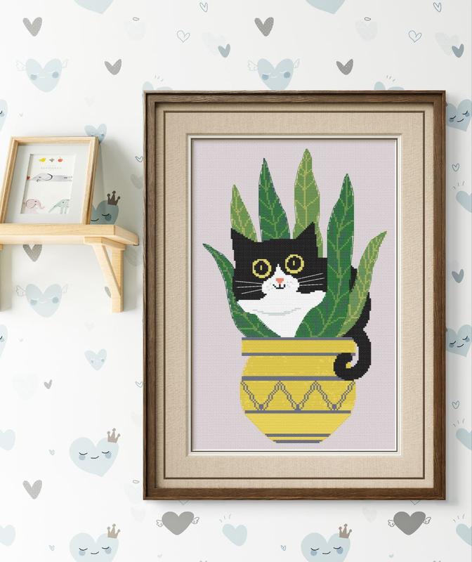 Набір вишивання хрестиком кіт у вазоні