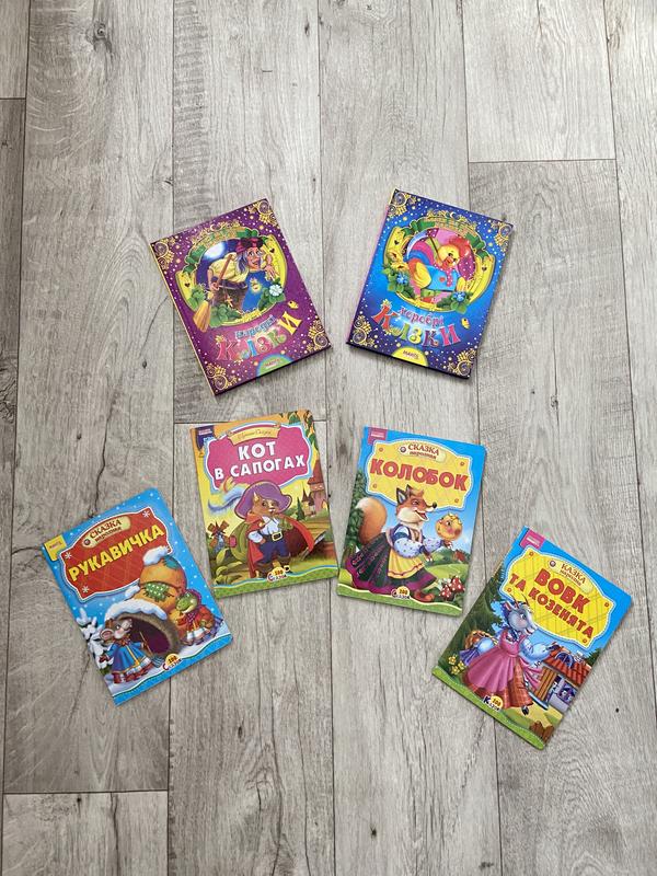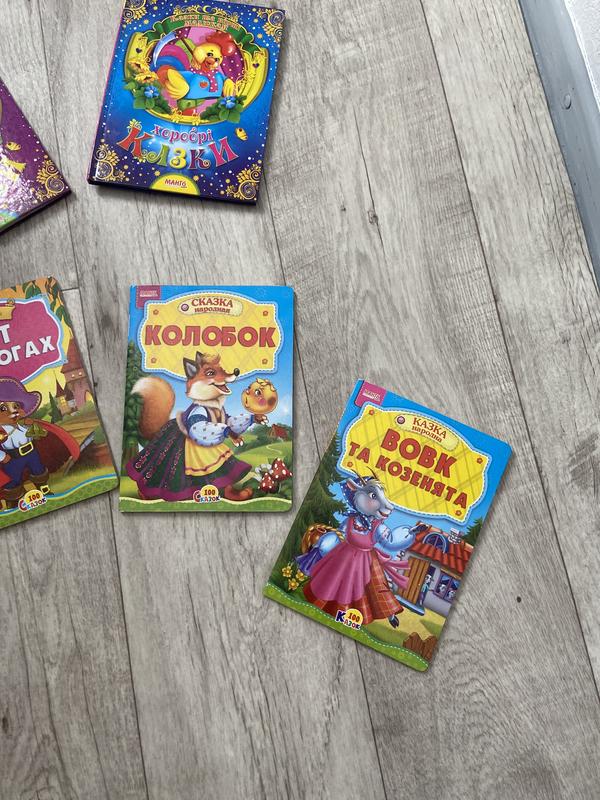 В ідеальному стані ✅Рукавичка ( рос.мова ) 35 грн❌Кот в сапогах ( рос.мова ) 35 грн❌Колобок (рос.мова) 35 грн✅Вовк та козеня (укр.мова) 35 грн ❌Народні казки (укр.мова) збірник 4 казки 55грн❌Хоробрі казки (укр.мова) збірник 4 казки 55 грн