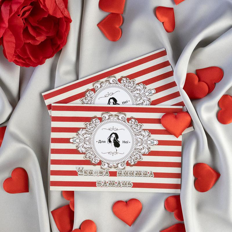 Чекова Книга Бажань – найдорожчий подарунок, тому що Ви даруєте найбезцінніші речі Любов та Увага. Це чудовий та незабутній подарунок на будь-яке свято для Вашої половинки. З подарунком Чекова Книга Бажань Для неї (укр.) )ви зобов'язуєтесь виконати 15 простих, але в той же час дуже приємних квестів або бажань вашої дівчини у встановлений період. Книга складається з 16 сторінок, сторінки з детальною інструкцією з використання та 15 дизайнерських купонів з бажаннями все російською мовою. Наприклад - півгодинний масаж, будь-яке бажання, приємний сюрприз та багато інших. Ваша кохана вибирає купон з бажанням, а Ви маєте його виконати. На додаток чековій книжці Ви можете придбати солодкий сюприз та оригінальний подарунок 100 та Одна Причина у нашому інтернет магазині Карнавал Жартів. Купивши Чекову Книжку Бажань Для неї (укр.) ви отримуєте не тільки якісний товар, а й 100% позитивних вражень від придбання.