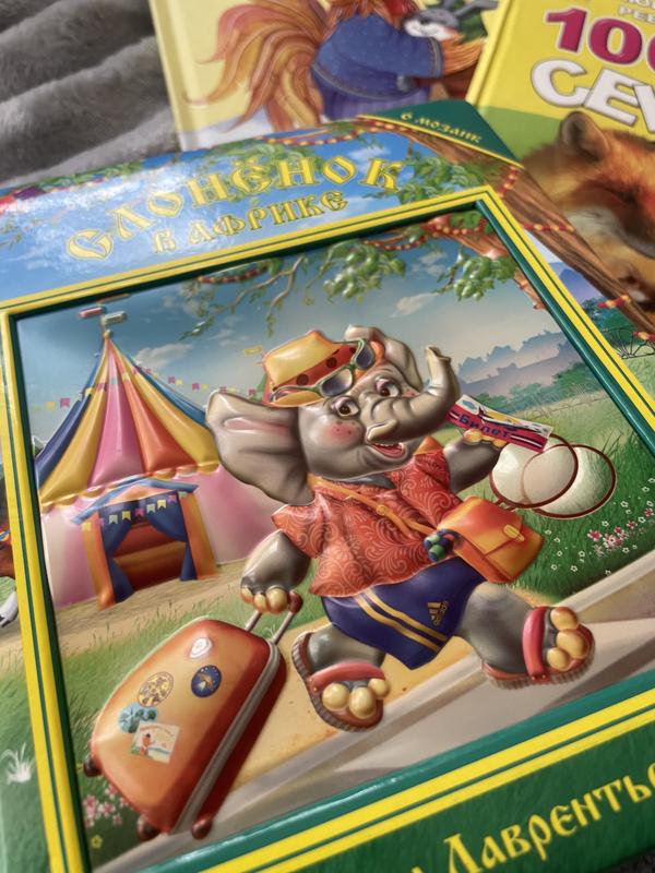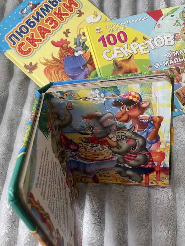 В книзі «Слоненок в Африке» містить 6 пазлів. Пазли всі на місті, у відмінному стані, їх жодного разу не діставали з книги (тримаються добре, не пошкоджені)