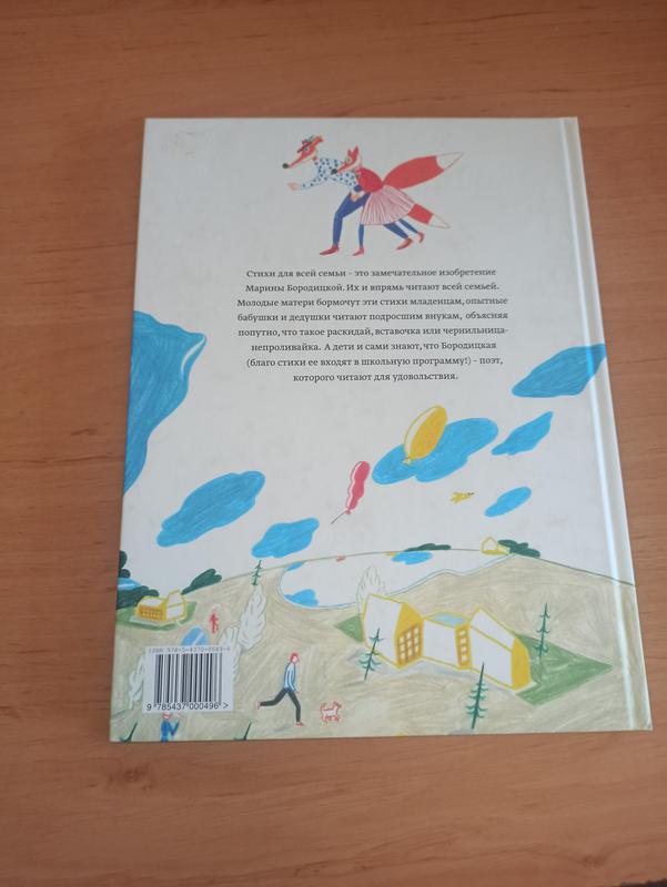 Стихи для всей семьи - это замечательное изобретение Марины Бородицкой. Их и впрямь читают всей семьей. Молодые матери бормочут эти стихи младенцам, опытные бабушки и дедушки читают подросшим внукам, объясняя попутно, что такое раскидай, вставочка или чернильница-непроливайка. А дети и сами знают, что Бородицкая (благо стихи ее входят в школьную программу!) - поэт, которого читают для удовольствия.