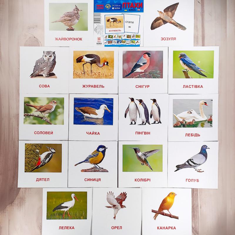 Дитячі картки домана "птахи", міні (укр.-англ.)