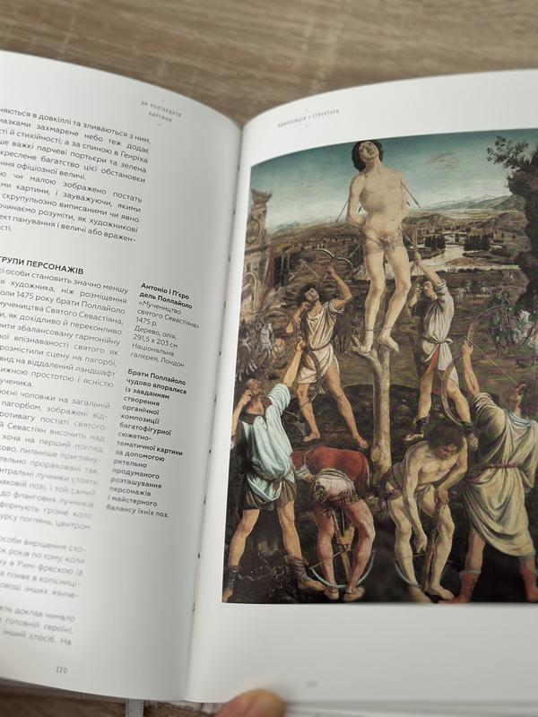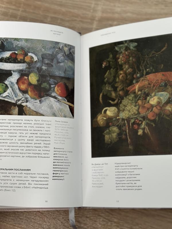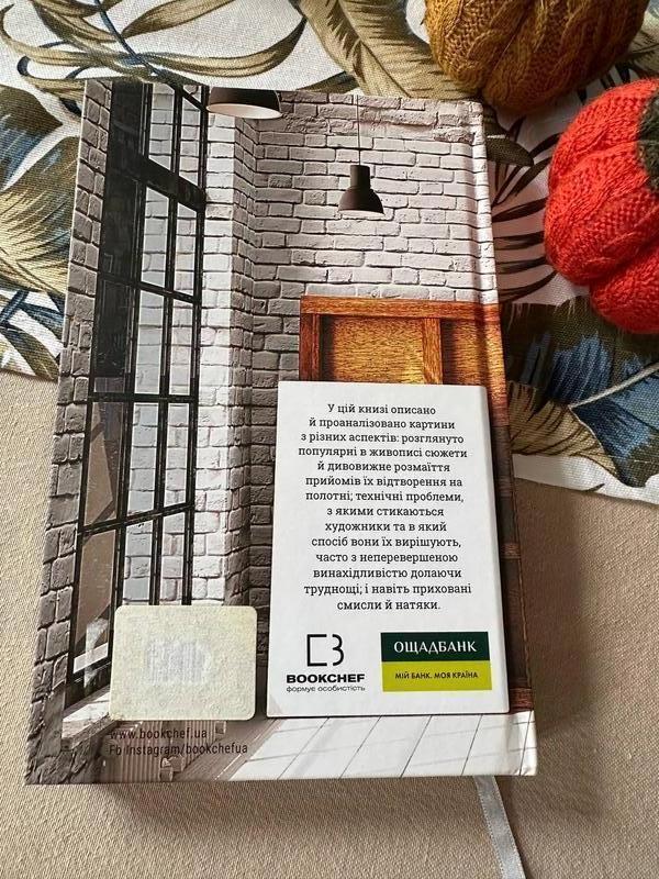 У цій книзі описано й проаналізовано картини з різних аспектів: розглянуто популярні в живописі сюжети й дивовижне розмаїття прийомів їх відтворення на полотні; технічні проблеми, з якими стикаються художники та в який спосіб вони їх вирішують, часто з неперевершеною винахідливістю долаючи труднощі; і навіть приховані смисли й натяки.