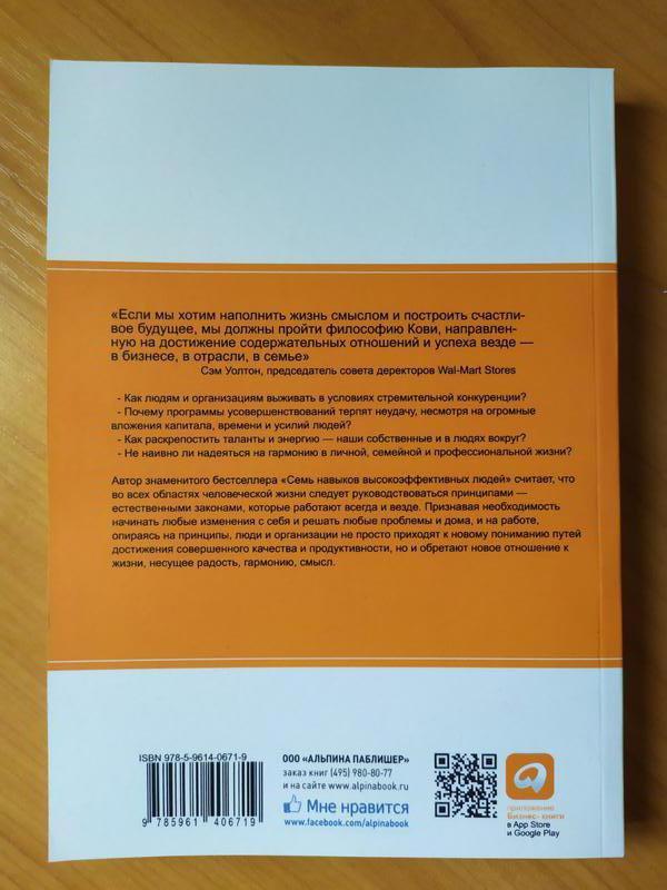 Книга Стівена Кові "Лідерство, засноване на принципах". Анотація: Автор знаменитого бестселлера «Семь навыков высокоэффективных людей» считает, что во всех областях человеческой жизни следует руководствоваться принципами — естественными законами, которые работают всегда и везде. Применительно к лидерству следование принципам помогает найти ответ на множество внутренне противоречивых вопросов. Как найти золотую середину между «жестким» и «мягким» стилем руководства? Как расширить полномочия сотрудников, не теряя контроль над ними? Как создать гибкую и открытую к преобразованиям культуру организации, не поступаясь чувством защищенности работающих в ней людей? Універсальність підходу Кові робить його цінним керівництвом для людей і організацій, які ставлять перед собою великі цілі. Книга призначена для широкої аудиторії. Рік: 2008 Обкладинка: м'яка Сторінок: 302 Папір: біла Розмір: 145х203мм Мова: російська