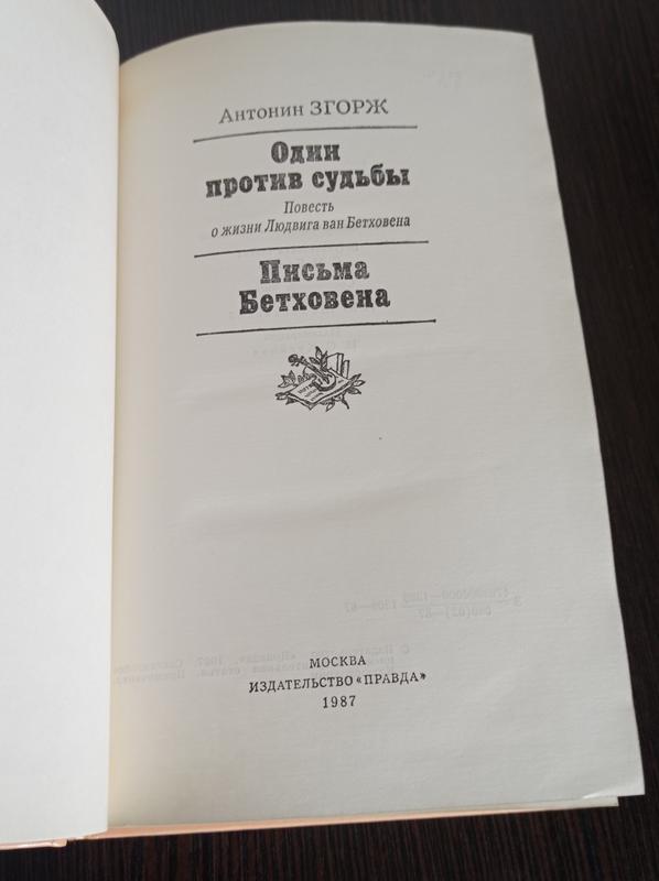 Книга.Антонін Згорж. Одна проти долі.Пісима Бетховена.Ідеальний стан.1987 рік. 496 сторінок з ілюстраціями.Оплата на мапу Приватбанка або Монобанка.Відсилання УП, НП, Міст.