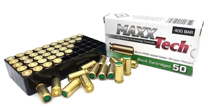 Патрон холостий MaxxTech 9мм пістолетний Brass plated