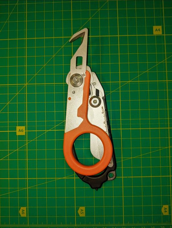 Крім ножиць, Raptor оснащений стропорізом для різання ременів безпеки, склобоєм для аварійного розбиття вікон, кусачками для розрізання кілець на пальцях та ключем для кисневого балона. Весь цей набір інструментів у складеному стані займає трохи більше пачки цигарок.
