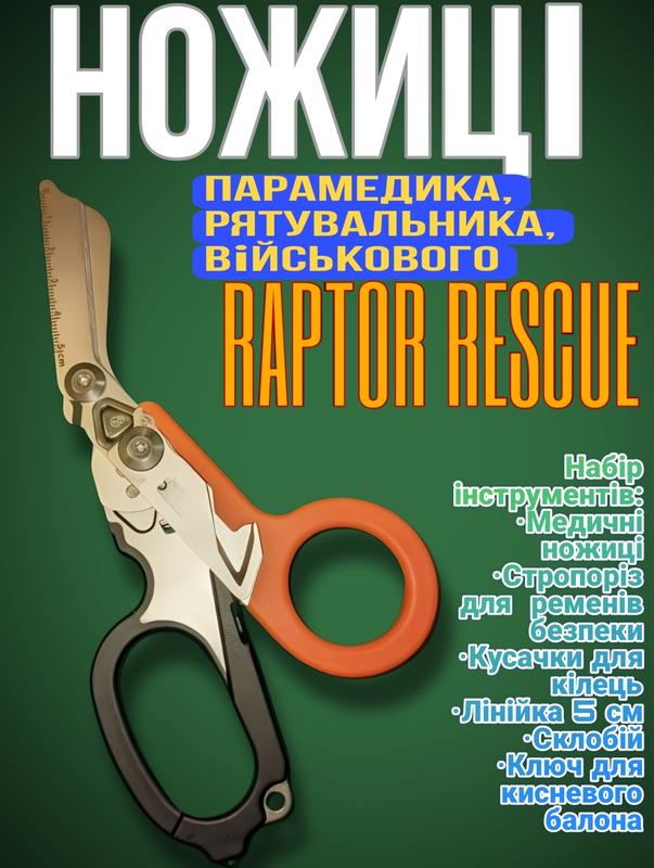 Універсальний мультиінструмент ножиці Raptor Rescue - це результат співпраці зі спеціалістами з різних сфер, включаючи парамедиків, військових та рятувальників. Він обладнаний базовим набором інструментів, необхідних у критичних ситуаціях.