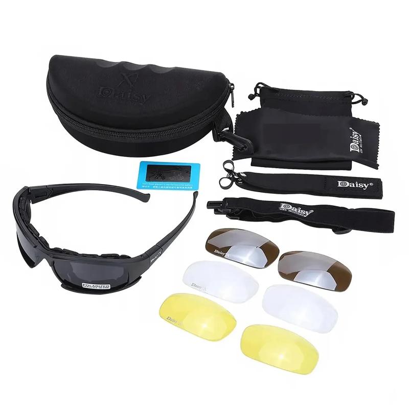 Окуляри тактичні захисні (4 лінзи) Daisy X7 Black. Тактичні захисні окуляри