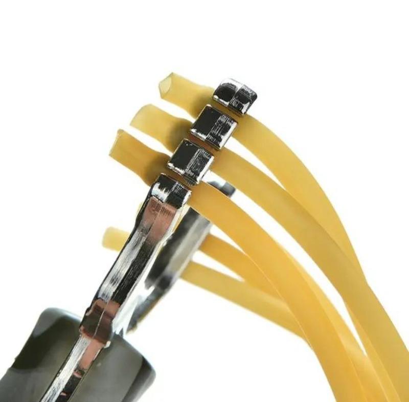 Конічний у перерізі та порожнистий джгут виготовлений з високоякісної гуми, а сідло для утримання снаряда - із міцної натуральної шкіри. Завдяки формі джгута, швидкість з якою снаряд вилітає із сідла, досить висока.