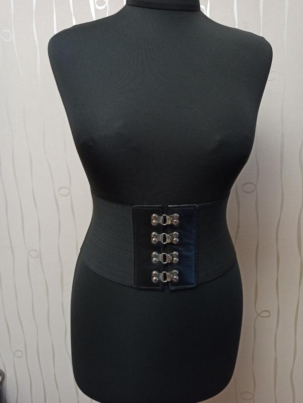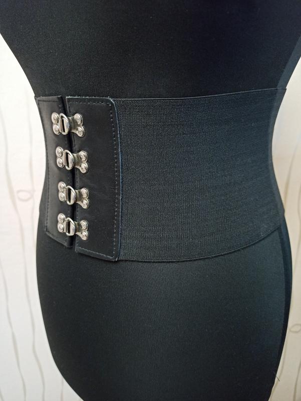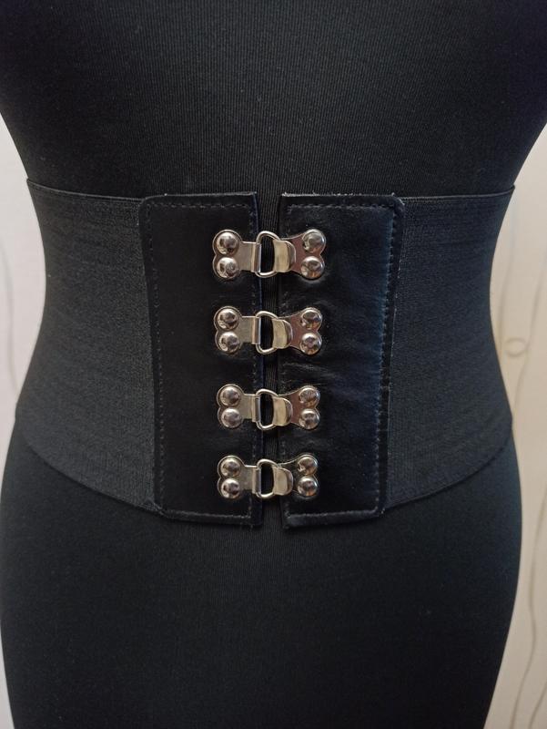 Стильний пояс корсетного типу з чотирма гачками, широка щільна резинкаШирина 13 смНа талію 66~70 см, 66 см в нерозтягнутому, резинка тягнеться.