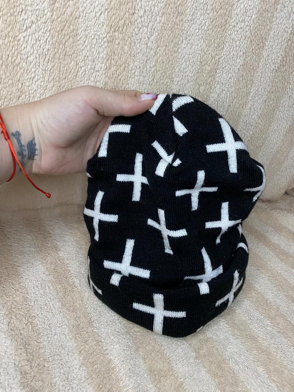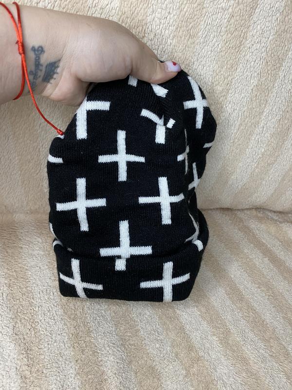 Вʼязана зимова шапка біні з відворотом ручної роботи (в наявності)