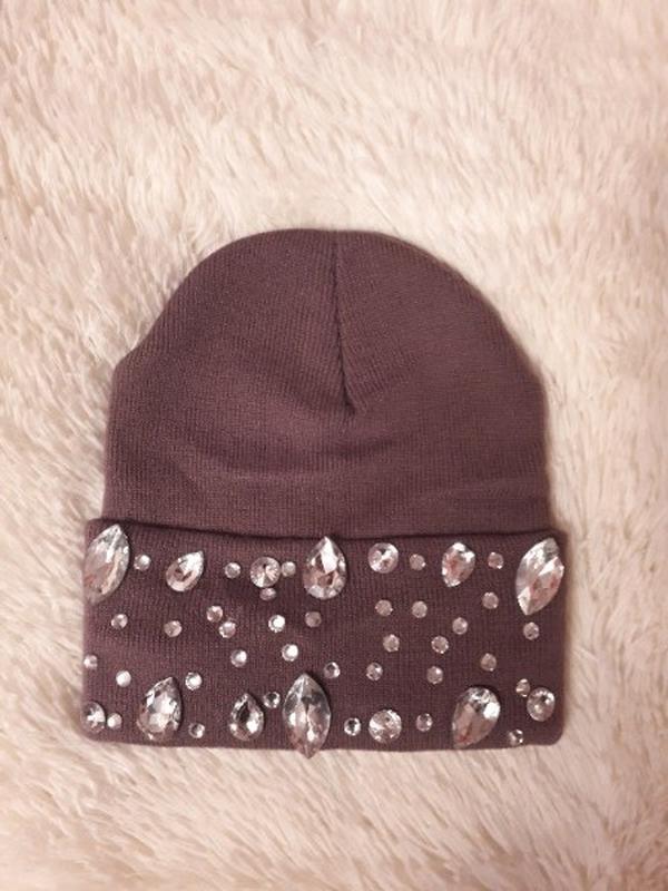 Красива світло-коричнева шапочка з великими каменями