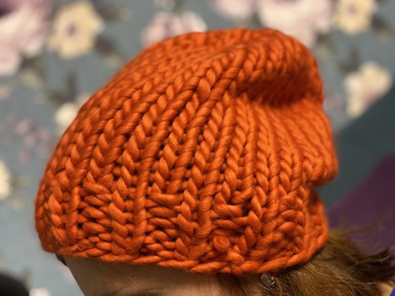 В’язана зимова шапка ручної роботи , тепла шапка, об’ємна шапка, шапка товстої в’язки, такорі