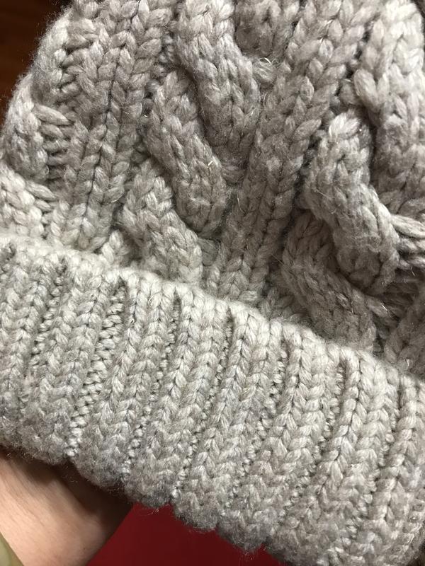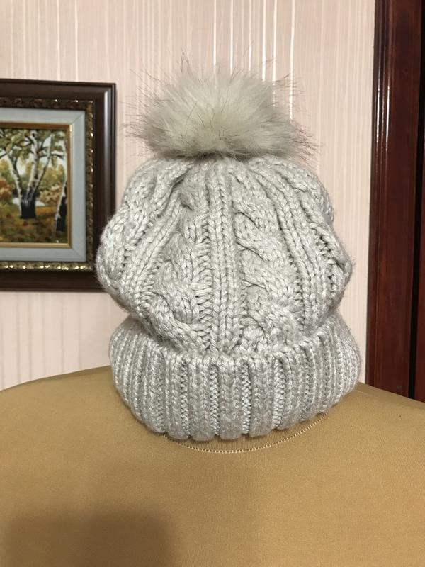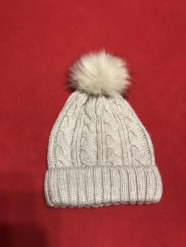 Стан нової,без дефектів,колір світло сірий з сріблястою ниткою. Ширина 18см тягнеться до 33см,висота 21см,помпон 11см