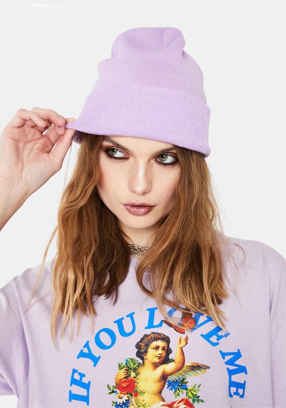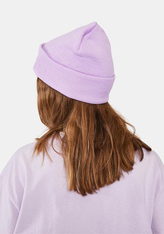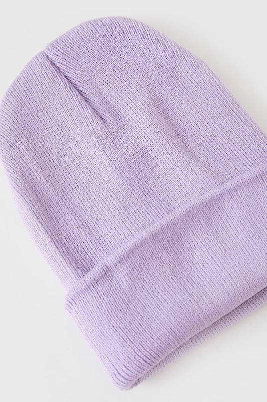 Базовая шапка бини женская лавандовая светло фиолетовая с отворотом унисекс без надписей