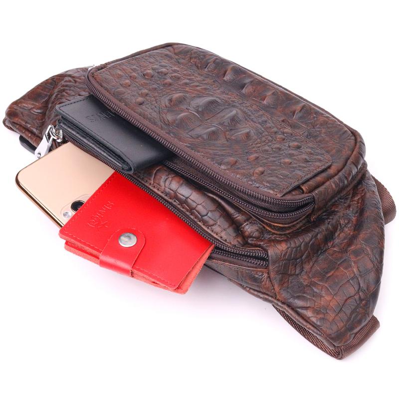 Стильна поясна сумка для чоловіків із натуральної фактурної шкіри високої