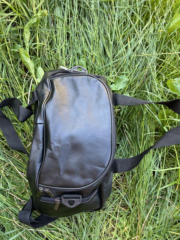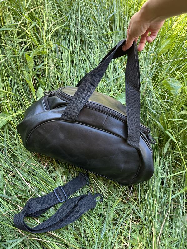 Абсолютно нова спортивна чорна сумка оригінальної форми Дуже містка Матеріал екокожа Одне велике відділення з маленьким кишенькою Один невеликий зовнішній кишеню для дрібниць Розмір 44*22*21 см В комплекті плечовий ремінь