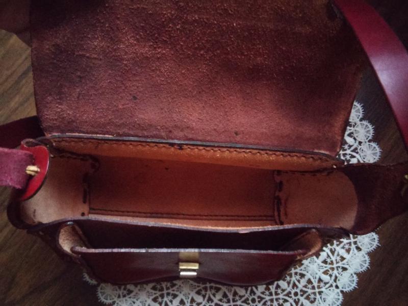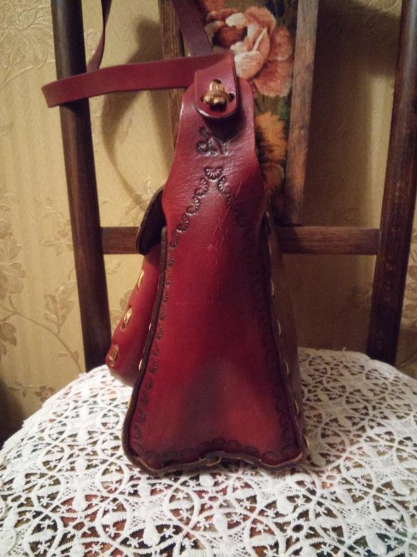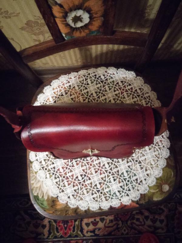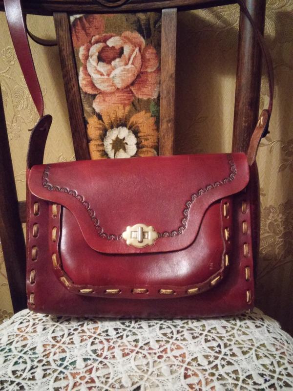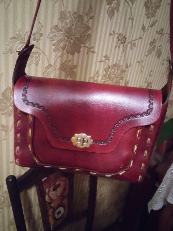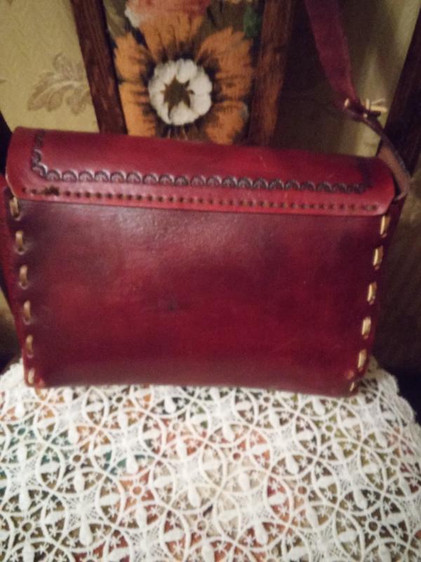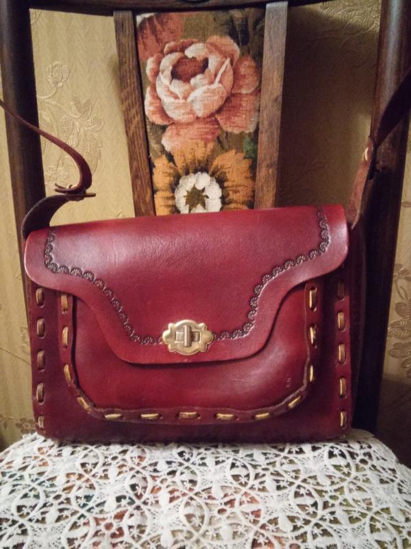 Дуже гарна шкіряна сумка з тисненням кольору марсал у вінтажному стилі стане прикрасою вашого образу,сумка має 1 відділення і кишеню на лицьовій стороні,дуже красива форма,містка сумка, розміри 25*19*12см,довжина ременя 96см,фурнітура -золото,сумка тримає форму,відмінний подарунок до свят,виконана в стилі косивских майстрів