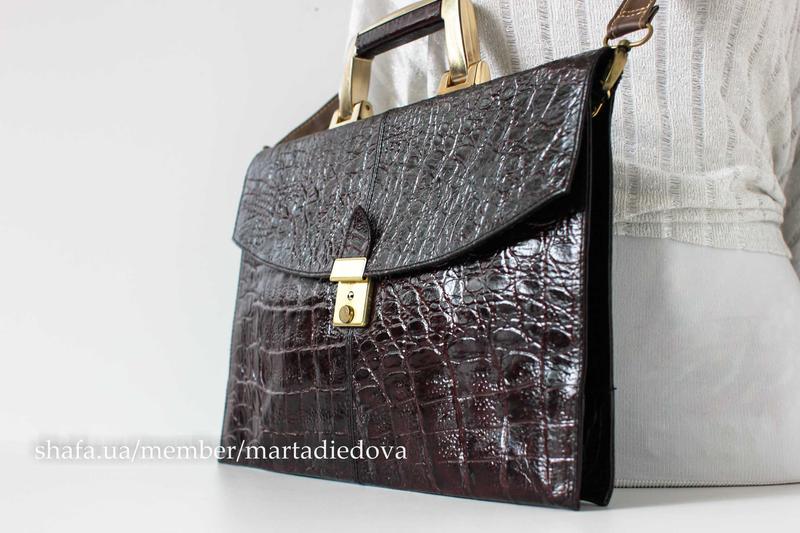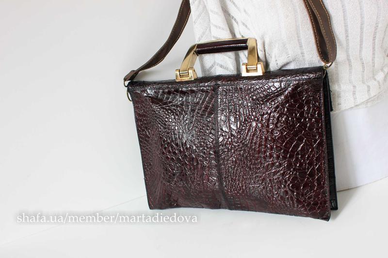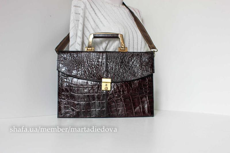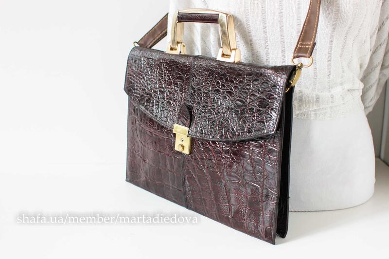 Винтажный кожаный портфель из настоящей кожи крокодила.