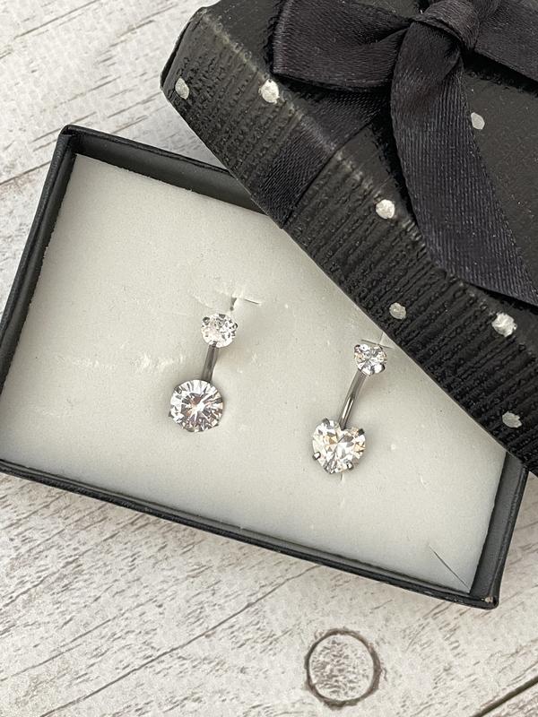 Срібна класична сережка пірсинг гвоздик пусет коло з фіанитом 925 закрутка застібка