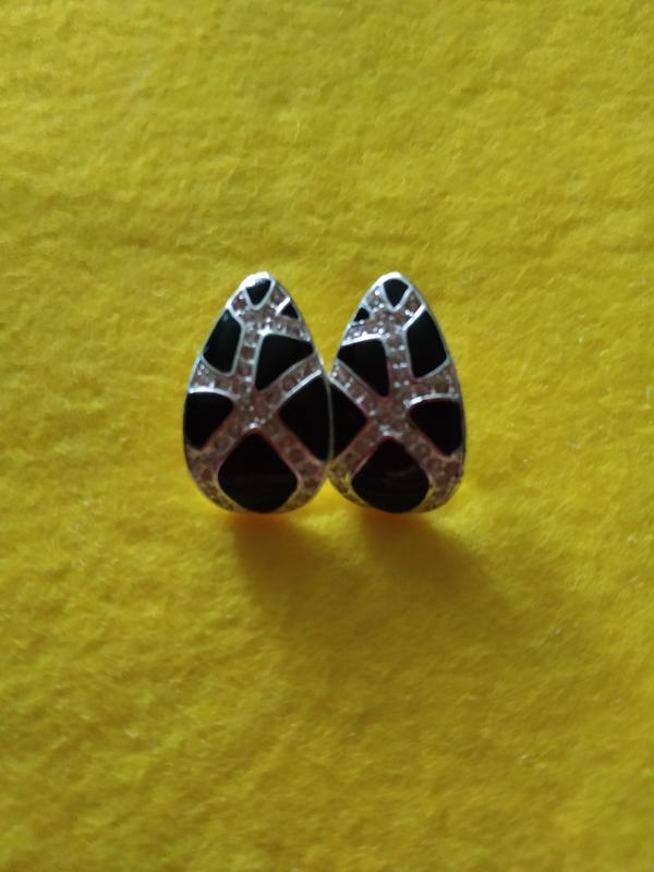Нові,в коробочці,оздоблені чорною глазур'ю та камінням,гвоздик з гіпоалергенного сплаву
