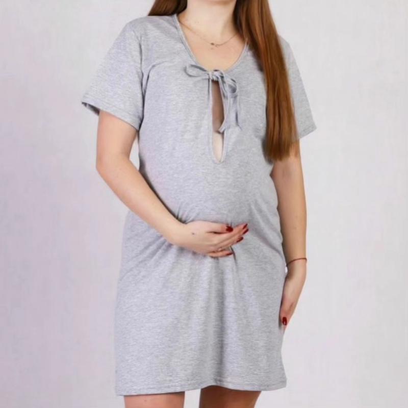 Жіноча нічна сорочка для вагітних і годуючих жінок з короткими рукавами.