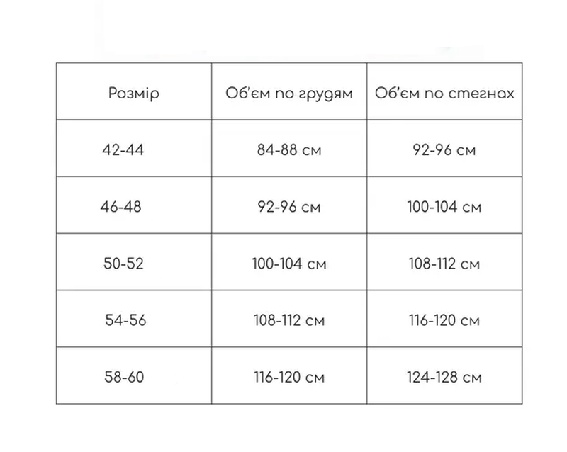 Розмір: 42-44, 46-48, 50-52, 54-56, 58-60