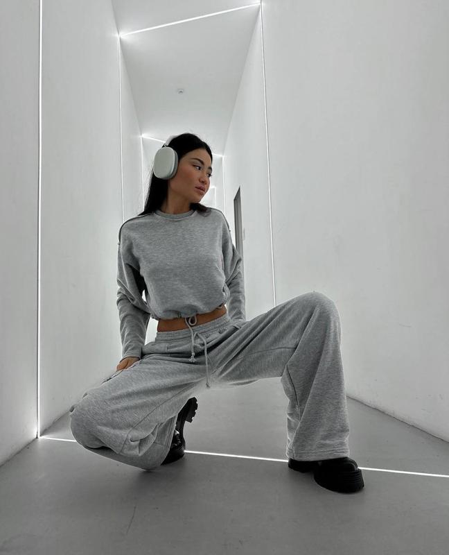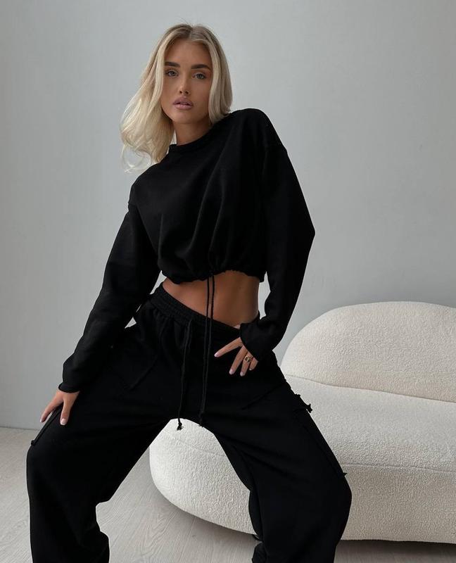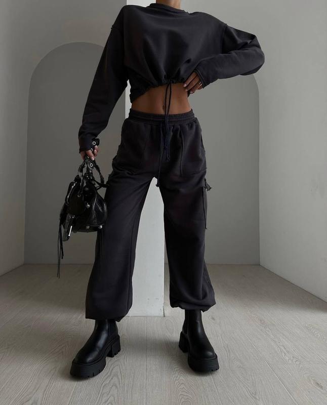 Розміри: 42-44, 46-48Тканина: двохнитка люксКольори: чорний,сірий, хакі, попелястий (темно-сірий)Довжина топа 52см, штанці внизу регулюються фіксаторами.