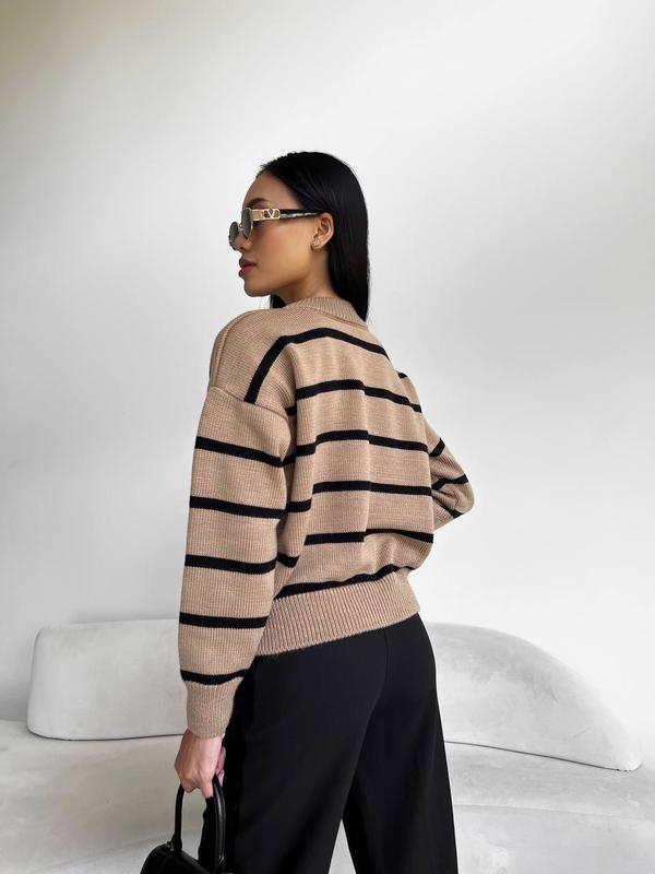 Джемпер в смужку - це стильний та універсальний одяг для будь-якого сезону. Наш джемпер виконаний з м'якого та комфортного матеріалу, який забезпечить вам тепло та затишок у холодні дні.