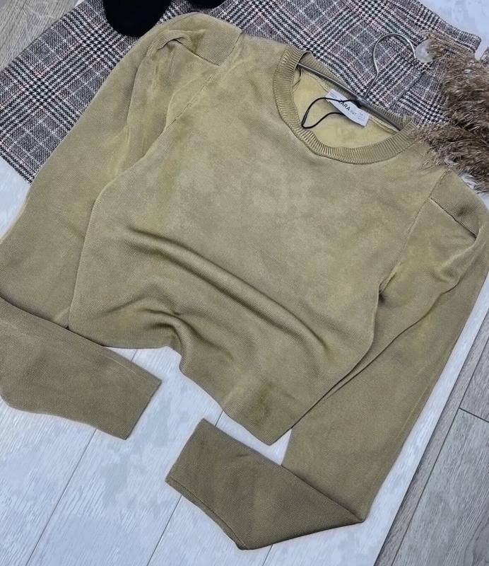 Новий вʼязаний джемпер zara s джемпер короткий джемпер золотистий з обʼємними рукавами