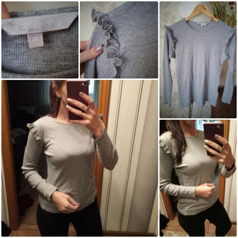 Кофточка з рюшами розмір вказаний 14,відмінно буде на М -L,одягнена на З на мене трохи вільно Тканина в рубчик