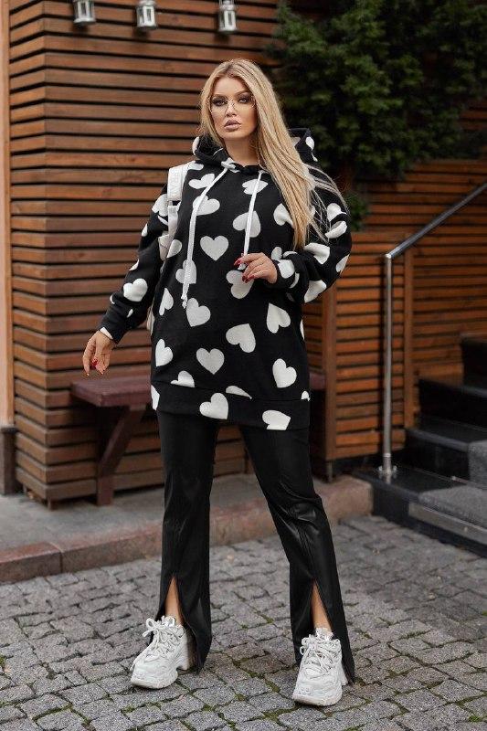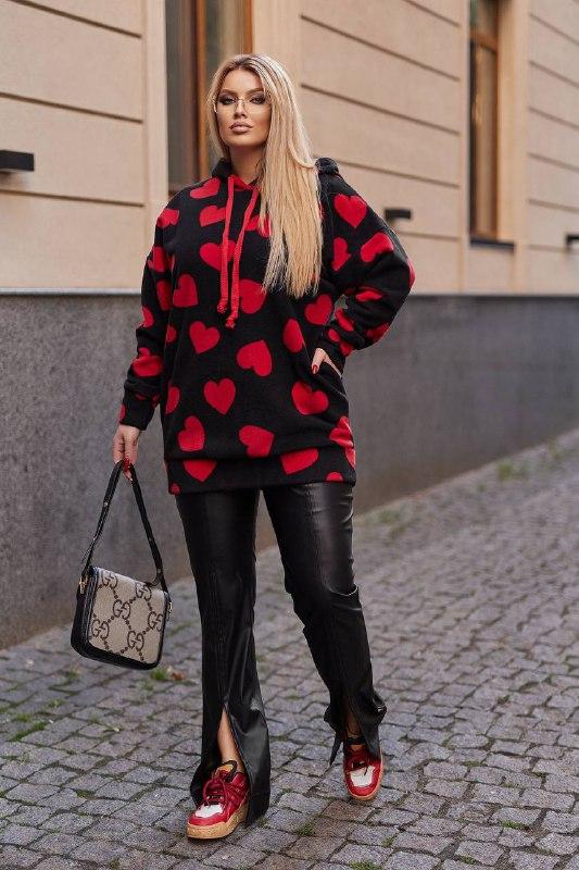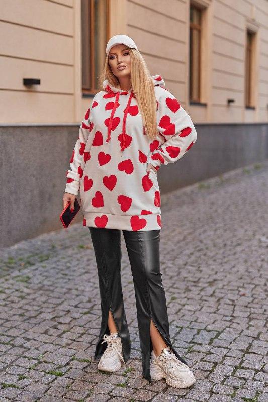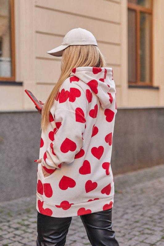 Худі з капюшоном та бічними кишенями, з принтом сердечко.