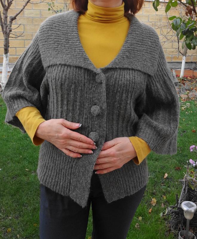 Дуже теплий, цікавий кардиган фірми ONLY Limitless. Застібається на 3 мохнатеньких гудзики. Прямі 3/4 рукава реглан, великий комір. Розмір маркується S і носиться в стилі оверсайз. Купувався дорого. Одягнений на M. виміри: під пахвами 52 см рукав від коміра 50 см висота 60 см