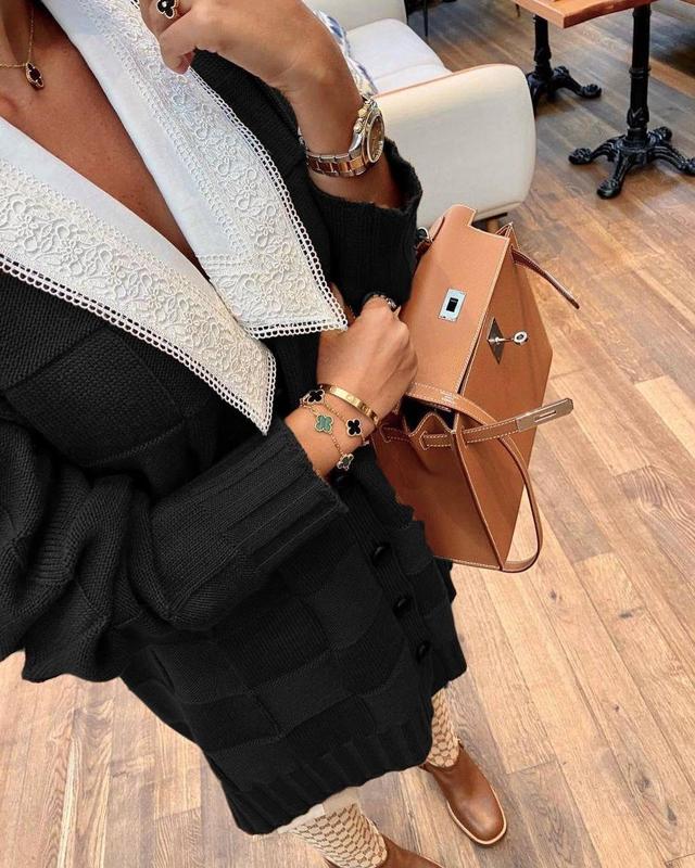 🔝Найтрендовіша новинка 🔝Стильні кардигани з комірцем ▫️Чорні та коричневі▫️Розмір єдиний Ширина 61 смДовжина 63-75 см Рукав 64 см